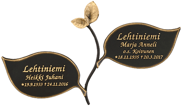 Löytäessänne mieleisen mallin tai kaivatessanne neuvoja olkaa meihin yhteydessä. Toimitamme muistolaatan myös räätälöidysti, suunnitelmanne mukaisesti, ja kauttamme saat myös pronssiset koristeet ja esim. veteraanitunnukset.